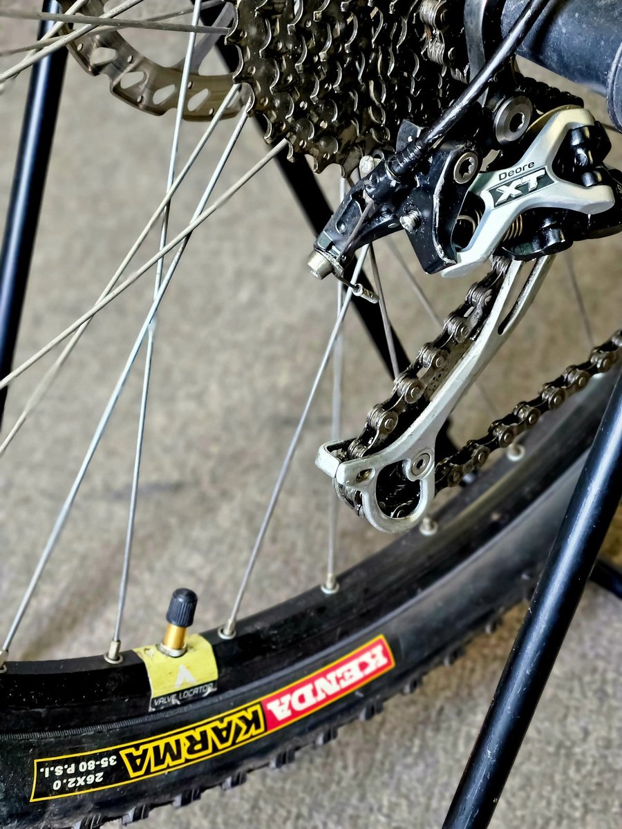 Ātrumu sistēma: Augstākās klases Shimano XT aizmugurējais pārslēdzējs – precīza un ātra pārslēgšanās pat slodzē.