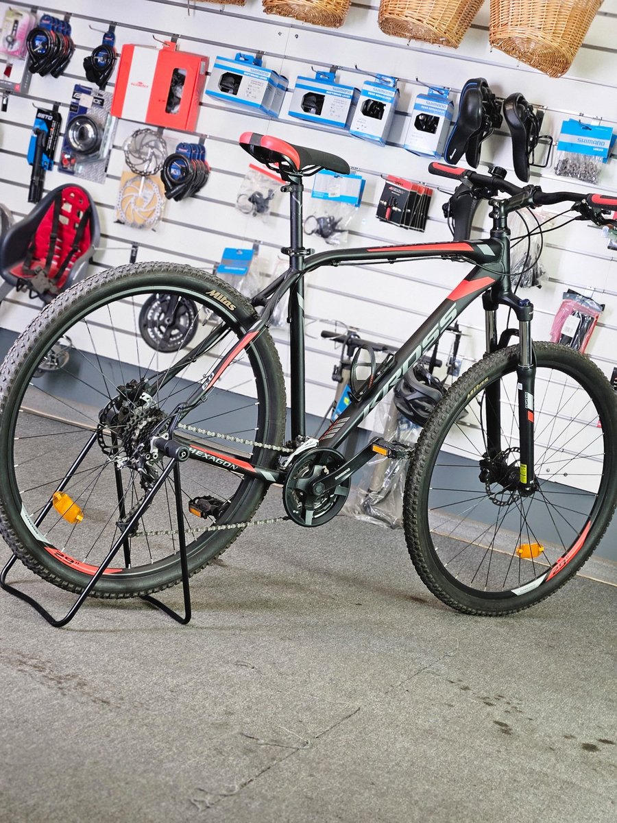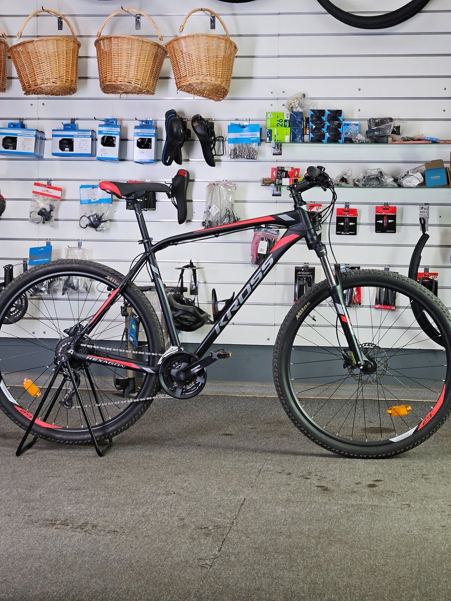 Kross Hexagon 29" new Shimano hidrauliskās disku bremzes, Shimano Acera 8x3 pārnesumi, SR Suntour XCM RL 100mm regulējama dakša ar LockOut, Mitas Ocelot V85 29X2.1 riepas, Kvalitatīvs velosipēds no Eiropas lielākā velo ražotāja Kross Bike.