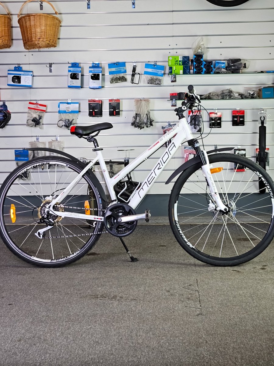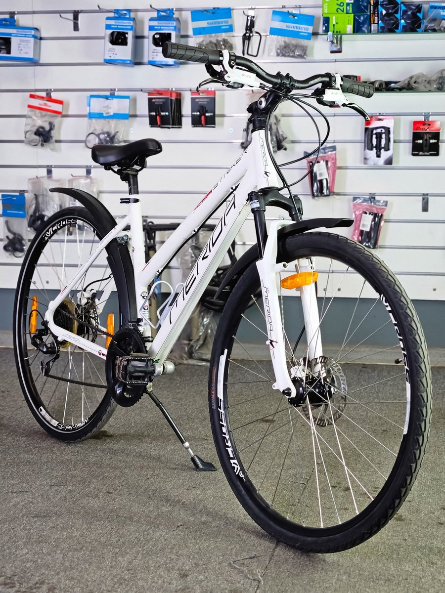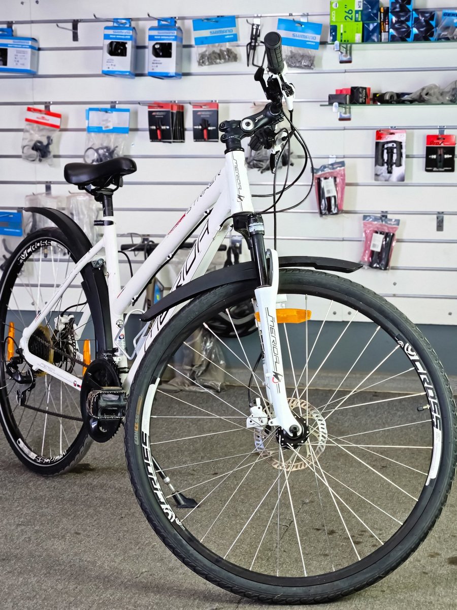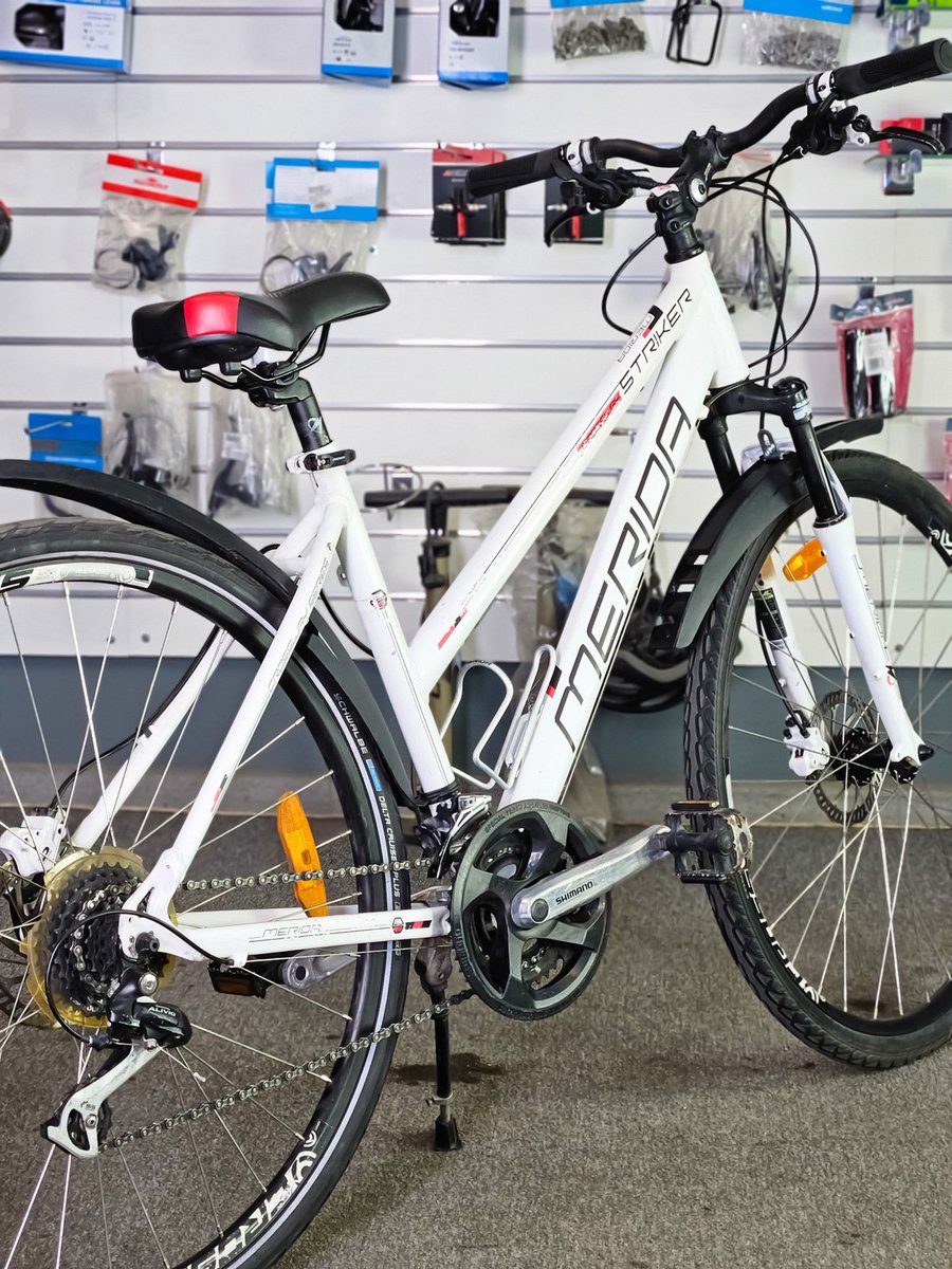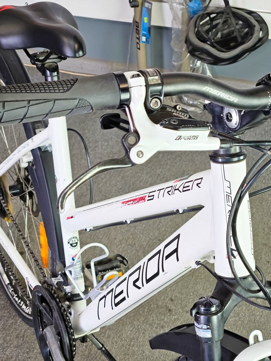 Merida Striker sērijai. Tas ir daudzpusīgs velosipēds, kas apvieno kalnu un pilsētas velosipēdu īpašības, padarot to piemērotu gan ikdienas braucieniem, gan vieglākiem meža ceļiem.