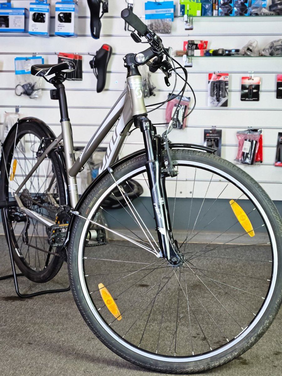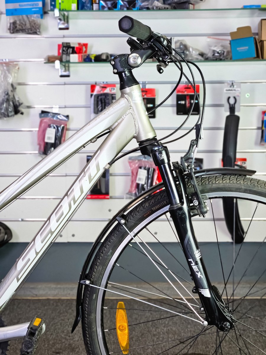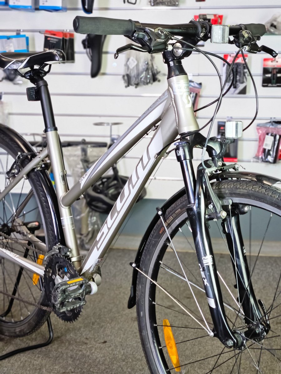 • Sēdpozīcija: Scott Sportster sērija ir slavena ar savu ērto, puslīdz taisno sēdpozīciju. Tādēļ mugura un kakls nenogurst arī garākos izbraucienos.